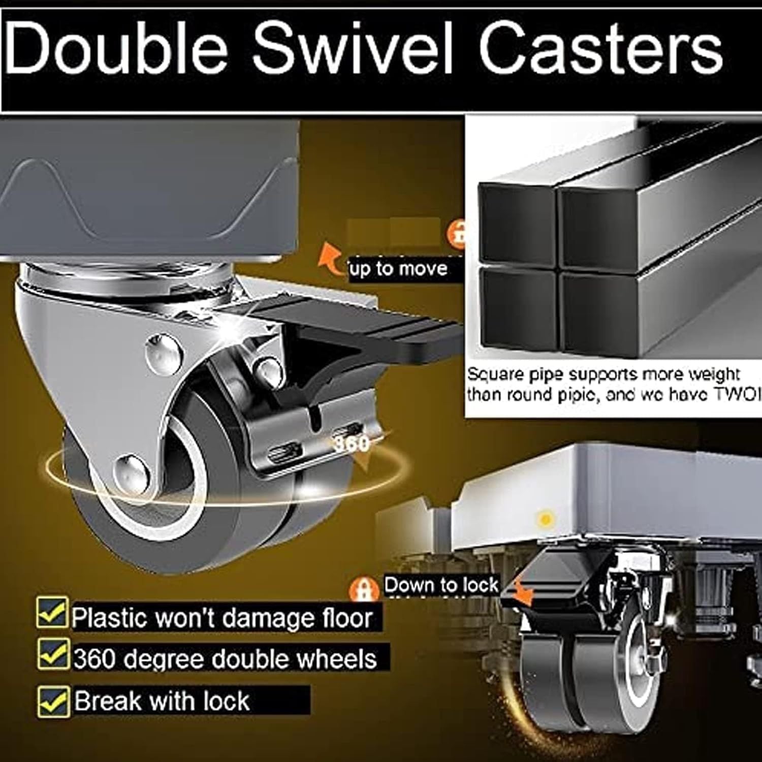 Easy to Install & Move – Simple tube-connection design for quick setup. Includes 4 lockable swivel wheels (360° rotation) for smooth movement and secure positioning.